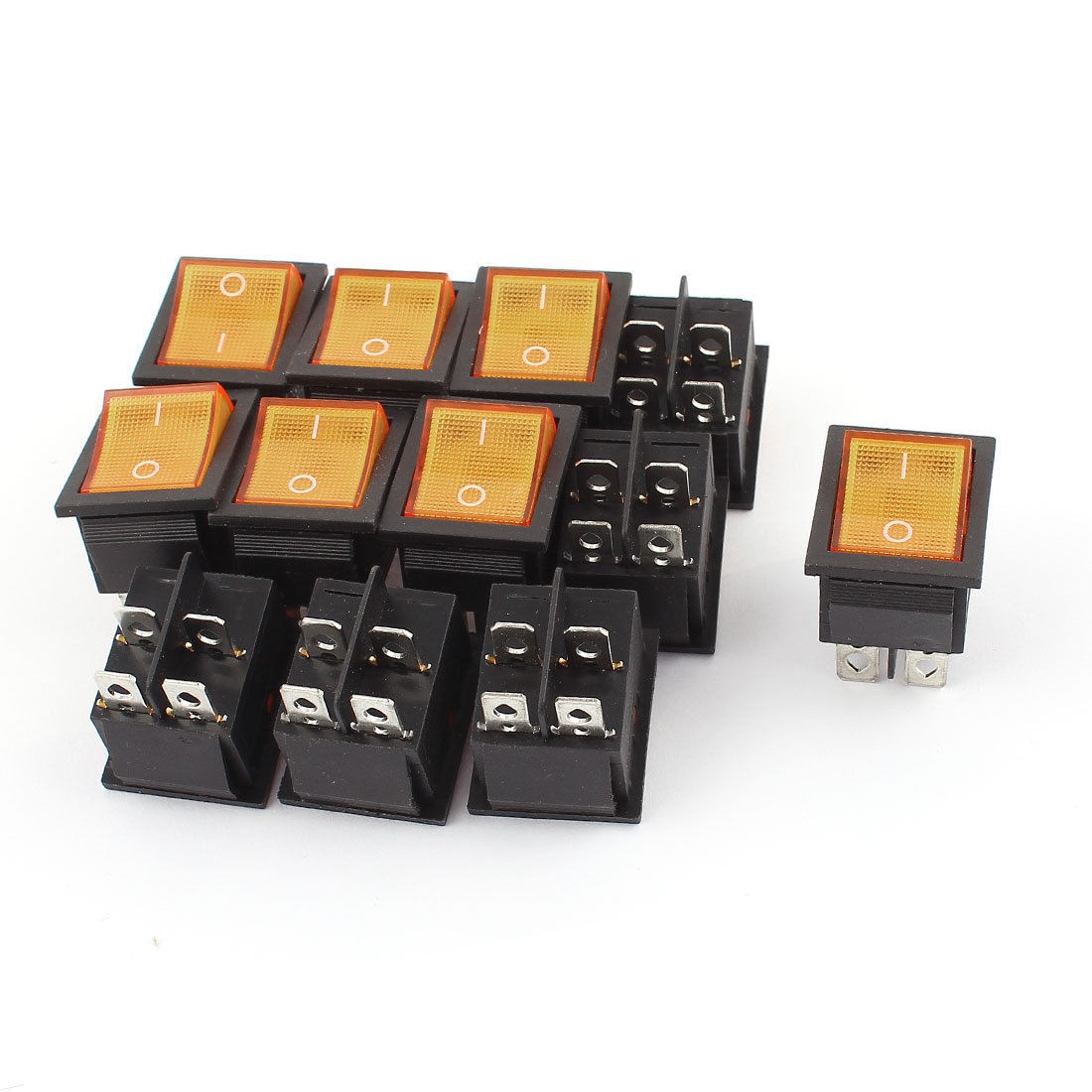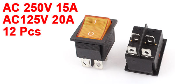 12 x Yellow Rocker Switch ON/OFF DPST AC 250V 15A AC125V 20A Panel Mount Snap-In