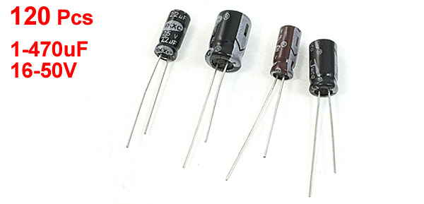 120 Pcs 1-470uF 16-50V 2 Pins Cylindrical Radial Aluminum Electrolytic Capacitor
