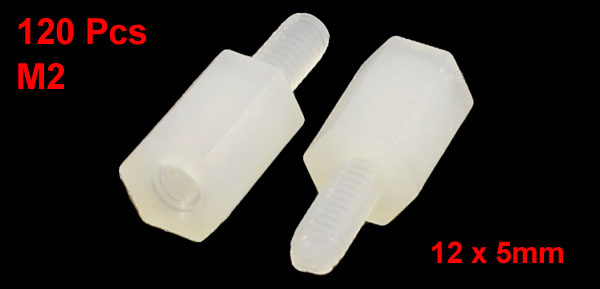 Product Name Threaded Spacer Thread Size M2 Thread Length 6mm / 0.24" Tube Length 6mm / 0.24" Total Size 12 x 5mm / 0.24" x 0.2" (H*D) Material Nylon Color White Net Weight 13g Package Content 120 Pcs (±2%) x Hexagonal Threaded Spacer - Reviews