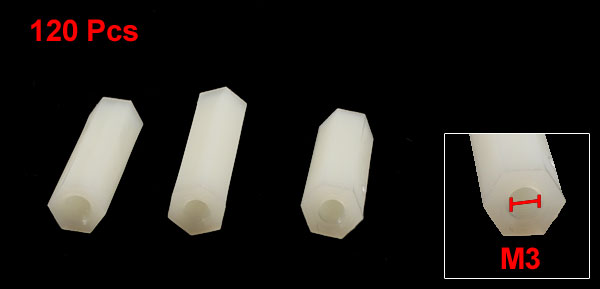 Product Name Hexagonal Threaded Spacer Thread Size M3 Total Size 20 x 6mm / 0.78" x 0.24" (H*D) Material Nylon Color White Net Weight 55g Package Content 120 Pcs (±2%) x Hexagonal Threaded Spacer - Reviews