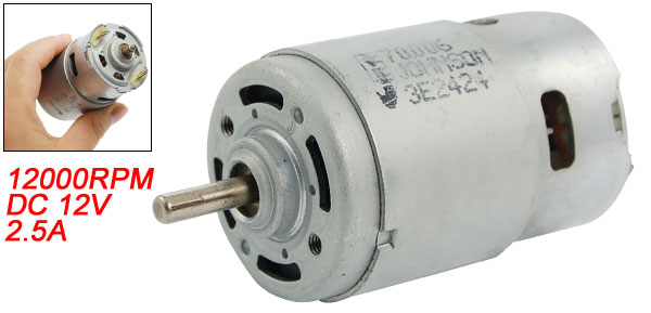 Product Name DC Motor Rated Voltage DC 12V Rated Current 2.5A Speed 12000RPM Shaft Diameter 5mm / 0.196" Shaft Length 18mm / 0.708" Body Diameter 45mm / 1.7" Total Length 100mm / 3.937" Main Color Silver Tone Material Metal Weight 377g Package 1 x DC Motor - Reviews