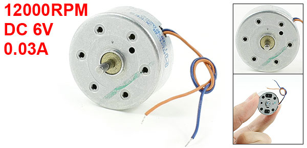 Product Name DC Motor Rated Voltage DC 6V Speed 12000RPM Rated Current 0.03A Mounting Screw Hole Diameter 1mm/0.04" Shaft Size 2 x 5mm/ 0.08" x 0.2"(D*L) Body Size 24 x 10mm/ 0.9" x 0.4" (D*H) Cable Length 6cm/2.4" Main Color Silver Tone Material Metal Net Weight 16g Package 1 x DC Motor - Reviews
