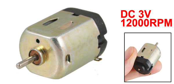 Product Name DC Micro Motor Model 130 Type Rated Voltage DC 3V Speed(no load) 12000RPM Max. Torque 65g.cm Body Size 2.5 x 2 x 1.5 cm / 1" x 0.8" x 0.6" (L*W*T) Shaft Diameter 2.2 mm / 0.087" Total Length 38 mm / 1.5" Main Color Silver Tone, Black Material Metal, Plastic Weight 18g Package 1 x DC Micro Motor - Reviews