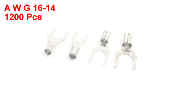 1200Pcs Fork Type Non-Insulated Spade Terminals AWG16-14 AWG22-16