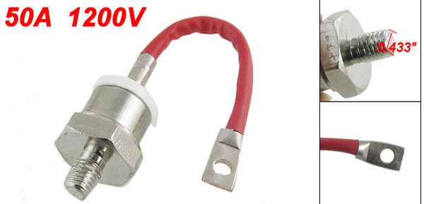 Product Name Rectifier Diode Model ZP50A Average Forward Current 50A Repetitive Peak Reverse Voltage(VRRM) 1200V Thread Diameter 11mm / 0.433" Main Body Size 31 x 31 x 47mm / 1.2" x 1.2" x 1.8"(L*W*H) Overall Height 190mm / 7.5" Material Metal, Ceramic Color As Picture Shown Net Weight 98g Package Content 1 x Rectifier Diode - Reviews