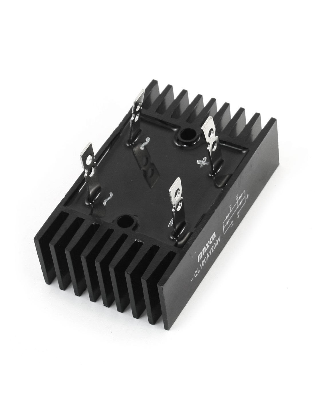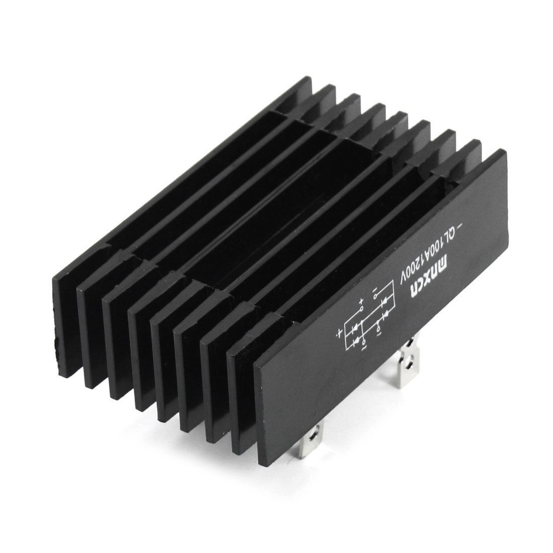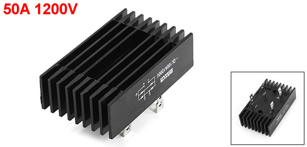 Product Name Bridge Rectifier Model -QL100A 1200V Input Average Current(DC) 50A Repetitive Peak Reverse Voltage(AC) 1200V Isolation Voltage 2500V Fixing Holes Diameter 4mm / 0.16" Pin Number 4 Fixing Holes Spacing 38 x 35mm /1.5" x 1.3"(L*W) Main Body Size(Not Included Pin) 100 x 60 x 28mm / 4" x 2.4" x 1.1" (L*W*T) Overall Height 55mm /2.2" Material Aluminum Color Black Net Weight 228g Package Content 1 x Bridge Rectifier - Reviews