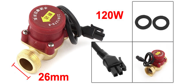 Product Name Water Flow Sensor Switch Fit Pump Power 120W Water Temperature Range 1 - 100 Degree Celsius Female Port Thread Dia 26mm / 3/4PT Male Thread(Fit Pipe Dia) 26mm/ 3/4PT Body Size(Approx.) 66 x 39 x 50mm / 2.6" x 1.5" x 2.0"(L*W*H) Cable Length 27.5cm / 10.8" Material Metal Color Copper Tone, Red Weight 150g Package Content 1 x Water Flow Sensor Switch - Reviews