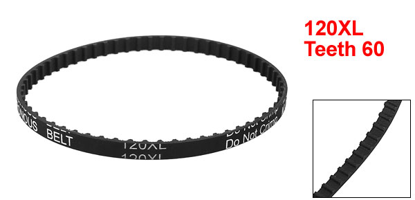 Product Name Timing Belt Model 120XL Number of Teeth 60 Code Number 025 Teeth Pitch 5.08mm / 0.2" Belt Width 6.4mm / 0.25" Pitch Length 304.8mm/ 12" Material Rubber Color Black Weight 7g Package Content 1 x Timing Belt - Reviews
