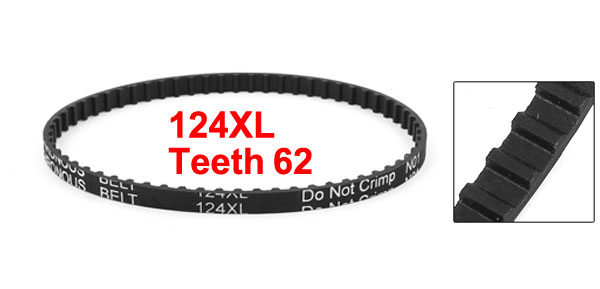 Product Name Timing Belt Model 124XL Code Number 025 Number of Teeth 62 Teeth Pitch 5.08mm / 0.2" Belt Width 6.4mm / 0.25" Pitch Length 314.96mm/ 12.4" Material Rubber Color Black Weight 6g Package Content 1 x Timing Belt - Reviews