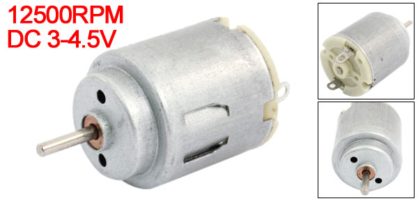 Product Name DC Motor Rated Voltage DC 3-4.5V Current 0.12A(Max.) Speed 12500 RPM Mounting Hole Diameter 2mm/0.08" Shaft Size 2 x 9mm/ 0.08" x 0.35"(D*L) Body Size 20 x 25mm/ 0.8" x 1" (D*H) Main Color Silver Tone Material Metal, Plastic Net Weight 20g Package 1 x DC Motor - Reviews
