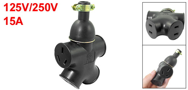 125V/250V 15A Water Resistant AU US 4 Plugs Rubber Socket Black