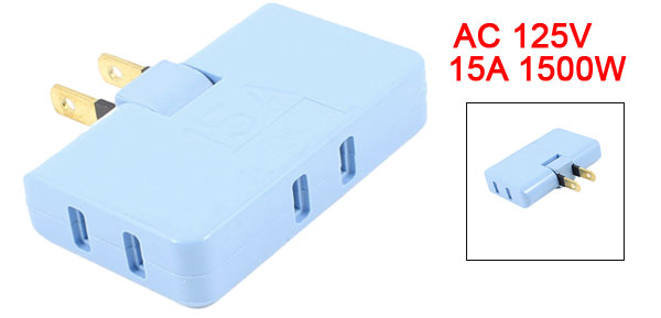 Product Name Rotation Triporate Power Plug Socket Plug Type Wall Socket Material Plastic, Metal Color Blue, Gold Tone Size 67 x 58 x 13mm / 2.6" x 2.3" x 0.51" (L*W*T) Rated Voltage 125V Rated Current 15A Power 1500W Weight 46g Package Content 1 x Rotation Triporate Power Plug Socket - Reviews