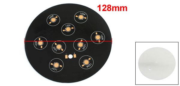 Product Name Aluminum PCB Circuit Board Fit for 9pcs x 1W/3W/5W LED Dia 128mm/5" Thickness 1.4mm/0.05" Mounted Hole Dia 5mm/0.2" Net Weight 50g Materials Aluminum Package Content 1 x Aluminum PCB Circuit Board - Reviews