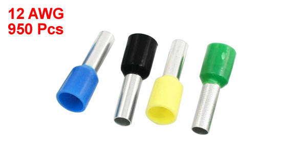 12AWG Wire E4009 Assorted Color Pre-Insulated Bootlace Ferrules Terminals 950Pcs