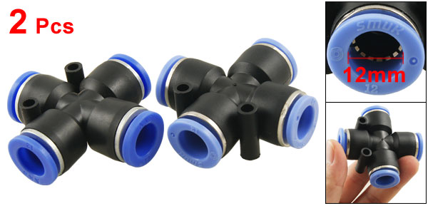 12mm 4 Way Cross Union Pneumatic Tube Push in Quick Fittings Connector 2 Pcs
