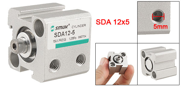Product Name Thin Air Cylinder Model No. SDA 12x5 Motion Type Double Action Bore 12mm Stroke 5mm Max Working Pressure 1.0Mpa Ensured Pressure Resistance 10.2kgf/cm2 Piston Rod External Diameter 6mm/ 0.24" Inlet / Outlet Thread Diameter 5mm/ 0.2" Mounting Thread Diameter 4.2mm/ 0.165" Working Medium Pass Filtered & Lubricator Compress Air Main Material Aluminum Alloy Color Silver Tone Size 25 x 25 x 27mm/ 1" x 1" x 1.1" (L*W*H) Net Weight 29g Package Content 1 x Thin Air Cylinder - Reviews