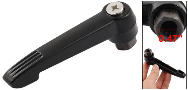 Product Name Adjustable Handle Material Metal Color Black Female Thread Diameter 12mm/ 0.47" Thread Depth 13mm/ 0.51" Lever Length 108mm/ 3.54" Overall Size 108 x 40mm/ 4.3" x 1.6"(L*H) Net Weight 128g Package Content 1 x Adjustable Handle - Reviews