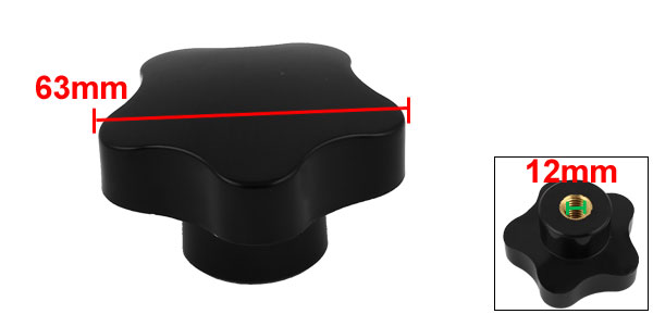 Product Name Star Knob Head Diameter 63mm / 2.5" Threaded Diameter 12mm / 0.47" Total Height 37mm / 1.5" Material Metal & Plastic Color Black Weight 84g Package Content 1 x Star Knob - Reviews