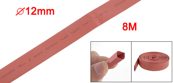 12mm Dia. Heat Shrinkable Tube Shrink Tubing 8M 26.2FT Red