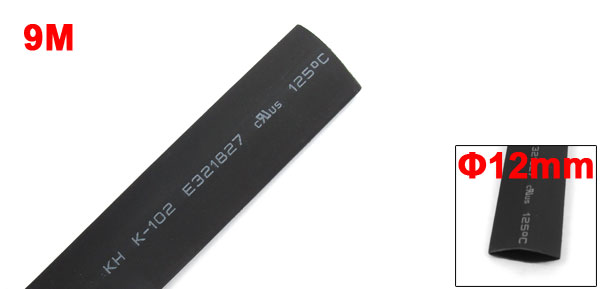 12mm Dia. Heat Shrinkable Tube Shrink Tubing 9m Length Black