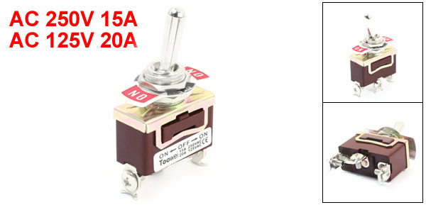 Product Name Toggle Switch Model T701CW Type SPDT (ON-OFF-ON) Position 3 Switch Latching Voltage, Current AC 250V 15A