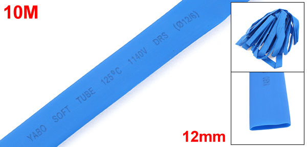 12mm Diameter Heat Shrinkable Tube Shrink Tubing Wire Wrap 10M 33Ft Blue