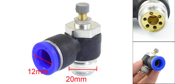 Product Name Pneumatic Speed Controller Inner Diameter (Blue End) 12mm / 0.47" Thread Outer Diameter 20mm / 0.79" Total Size 50 x 50 x 26mm / 2" x 2" x 1" (L*W*T) Main Material Plastic, Metal Color Blue, Black, Silver Tone Weight 78g Package Content 1 x Speed Controller - Reviews