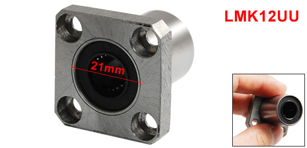 Product Name Linear Bearing Model LMK12UU Material Metal, Rubber Inner Diameter 12mm / 0.47" Outer Diameter 21mm/ 0.83" Length 30mm/ 1.18" Square Size 32.4 x 32.4 x 6mm/ 1.27" x 1.27" x 0.24"(L*W*T) Mount Hole Dia. 4.3mm/ 0.17" Hole Pitch 21.2mm/ 0.84"(Center to Center) Color Silver Tone Net Weight 53g Package Content 1 x Linear Motion Ball Bearing - Reviews