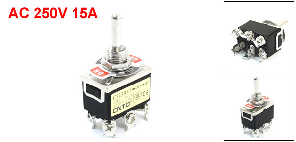 Product Name Toggle Switch Model C523B Type DPDT Rated Voltage & Current AC250V 15A Position 3 Position(ON/OFF/ON) Mounting Hole Diamter 12mm / 0.47" Main Body Size 34 x 20 x 21mm / 1.3" x 0.8" x 0.83"(L*W*H) Overall Height 60mm / 2.4" Material Metal & Resin Color Black, Silver Tone Weight 38g Package Content 1 x Toggle Switch - Reviews
