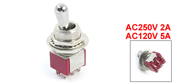 12mm Mounting Dia 2 Positions DPDT Rocker Toggle Switch AC250V/2A 120V/5A