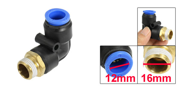 12mm OD Tube to 16mm M Thread Pneumatic Elbow Connector Quick Fitting