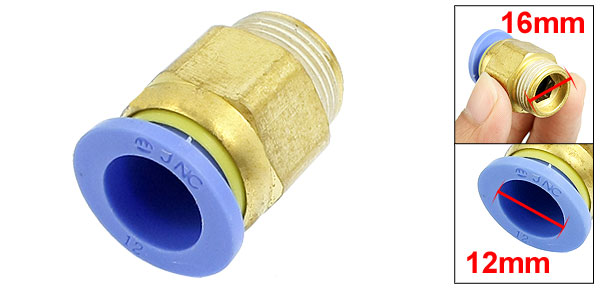 12mm OD Tube to 16mm Male Thread Pneumatic Connector Quick Fitting