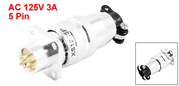 Product Name Aviation Connector Plug Model XS12-5 Max Voltage AC 125V Max Current 3A Withstand Voltage AC 1500V Pin Quantity 5 Pin Mounting Hole Diameter 12mm / 0.7" Total Length 50mm/ 2" Material Metal Color Silver Tone Weight 18g Package 1 x Aviation Connector Plug - Reviews