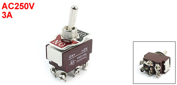 Details12mm Panel Mount DPDT 2 Positions 6-Terminals Toggle Switch AC250V 3A  Product Name Toggle Switch Model KNG1-202 Type DPDT(Locking) Position 2 Positions Mounting Hole Diamter 12mm / 0.47" Voltage & Current AC250V, 3A Main Body Size 34 x 20 x 20mm / 1.3" x 0.8" x 0.8"(L*W*H) Overall Height 59mm / 2.3" Material Metal & Resin Color As Picture Shown Weight 40g Package Content 1 x Toggle Switch