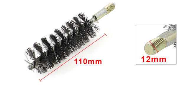 Product Name Steel Wire Tube Brush Material Steel, Metal Threaded Diameter 12mm/0.5" Bristle Brush Length 110mm/4.3" Total Size 160 x 40mm/ 6.3" x 1.6"(L*D) Net Weight 93g Package Content