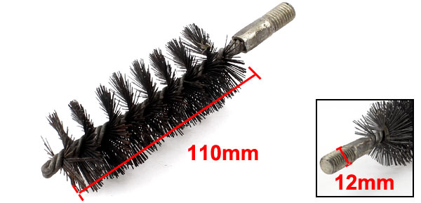 Product Name Steel Wire Tube Brush Material Steel, Metal Threaded Diameter 12mm/0.5" Bristle Brush Length 110mm/4.3" Total Size 155 x 43mm/ 6.1" x 1.7"(L*D) Net Weight 103g Package Content