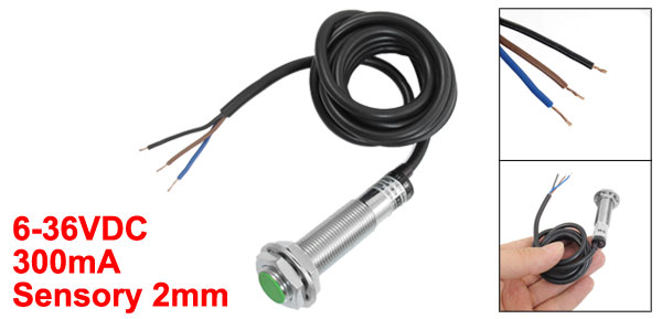 Product Name Inductive Proximity Switch Model LJ12A3-2-Z/BX Output Type NO 3 Wires Working Voltage 6-36VDC Output Current 300mA Detecting Distance 2mm Head Dia. 11.5mm / 0.45" Mounting Thread Dia. 12mm / 0.47" Body Size(Approx) 5.5 x 2.2cm / 2.2" x 0.87" (L*D Max) Cable Length(Approx) 1.15M / 4Ft External Material Plastic Weight 45g Package Content 1 x Inductive Proximity Switch - Reviews