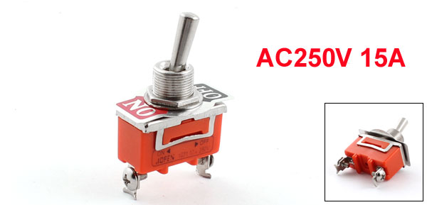 Details12mm Thread Diameter 2 P 2-Terminals SPST Toggle Switch AC 250V 15A  Product Name Toggle Switch Model E-TEN 1021 Type SPST Position 2 Positions (ON/OFF) Action Latching Thread Diameter 3mm / 0.12" Voltage & Current AC250V, 15A Main Body Size 29 x 28 x 18mm / 1.1" x 1.1" x 0.7"(L*W*H) Overall Height 57mm / 2.2" Material Metal & Resin Color Orange, Silver Tone Weight 24g Package Content 1 x Toggle Switch