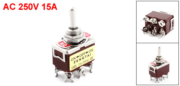 Product Name Toggle Switch Type DPDT(Latching) Position 3(ON/OFF/ON) Terminals 6 Screw Terminal Voltage & Current AC 250V 15A