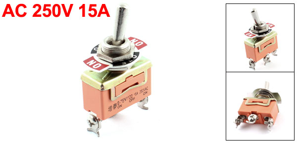 Details12mm Thread SPDT 3 Screw Terminals ON/OFF/ON Orange Metal Toggle Switch  Main Color Orange Thread Dia 12mm Country of Manufacture CHINA Action Type Latching Terminals 3 Screw Terminals Material Metal Contact Type SPDT Total Size 30 x 21 x 53mm/1.2" x 0.83" x 2.1"(L*W*H) Product Name Toggle Switch Net Weight 26g Rated AC 250V 15A Package Content 1 x Toggle Switch Position ON/OFF/ON