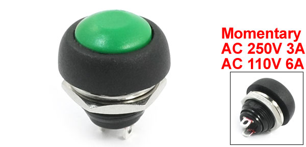 Item Name Push Button Switch Action Type Momentary Head Shape Round Head Head Color Green Contact SPST(ON/OFF) Switch Rating AC 250V 3A