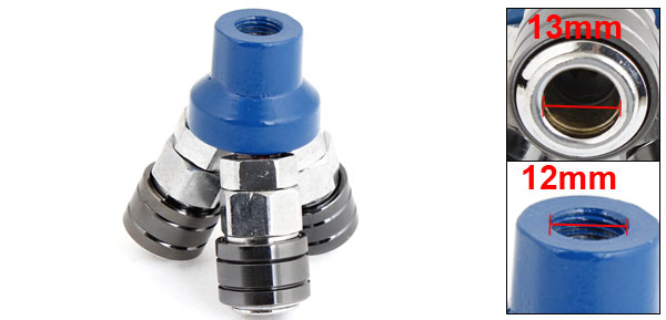 Product Name Quick Fittings Material Metal Dimension 7 x 6.3 x 6cm / 2.8" x 2.5" x 2.4"(L*W*H) Female Thread Diameter 12mm / 1/4" PT Outlet Hole Diameter 13mm / 0.51" Color Silver Tone,Blue,Black Net Weight 345g Package Content 1 x Quick Fittings - Reviews