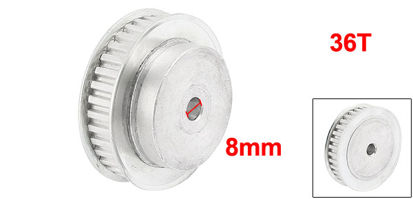 Product Name Timing Pulley Tooth Number 36T Pitch 3mm /0.12" Pitch Dia 58mm/23" Bore Diameter 8mm /0.31" Bore Outside Diameter 43mm /1.7" Fit Belt Width 12mm /0.47" Overall Size 61 x 25mm /2.4" x 1" (D*H) Material Aluminum Alloy Color Silver Tone Weight 154g Package Content 1 x Timing Pulley - Reviews