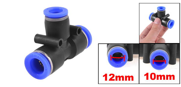 12mm x 10mm T Joint Plastic One Touch Tube Connector Quick Coupler