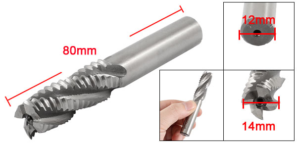 12mm x 14mm x 40mm x 80mm 4 Flutes HSS AL End Mill Milling Cutter Tool