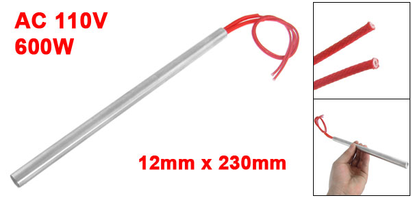 Product Name Cartridge Heater Material Stainless Steel, PVC, Nylon Rated Voltage AC 110V Power 600W Heater Size (Approx.) 12 x 230mm / 0.47" x 9" (D * L ) Wire Length(Approx.) 28.5cm / 11.2" Color Silver Tone, Red Weight 110g Package Content 1 x Cartridge Heater - Reviews