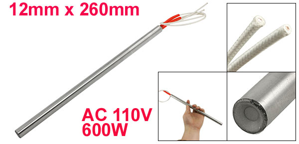 Product Name Cartridge Heater Material Stainless Steel, PVC, Nylon Rated Voltage AC 110V Power 600W Heater Size (Approx.) 12 x 260mm / 0.47" x 10.2" (D*L) Wire Length (Approx.) 29cm / 11.4" Color Silver Tone, Red, White Weight 126g Package Content 1 x Cartridge Heater - Reviews