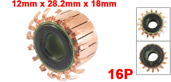 Product Name Motor Commutator Copper Bar Number 16P Total Length 12 x 28.2 x 18mm/0.5" x 1.1" x 0.7"(ID*OD*T) Material Copper, Feerite Color Copper Tone, Black Net Weight 34g Package Content 1 x Motor Commutator - Reviews