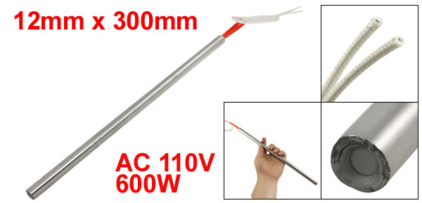 Product Name Cartridge Heater Material Stainless Steel, PVC, Nylon Rated Voltage AC 110V Power 600W Heater Size (Approx.) 12 x 300mm / 0.47" x 11.8" (D * L ) Wire Length (Approx.) 29cm / 11.4" Color Silver Tone, Red, White Weight 145g Package Content 1 x Cartridge Heater - Reviews