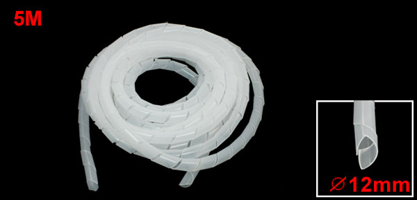 Product Name Spiral Wrap Material Polyethylene Color White Total Length 5M / 16.4 Ft Outside Diameter 12mm / 0.47" Thickness 1mm / 0.04" Net Weight 130g Package Content 1 x Spiral Wrap - Reviews